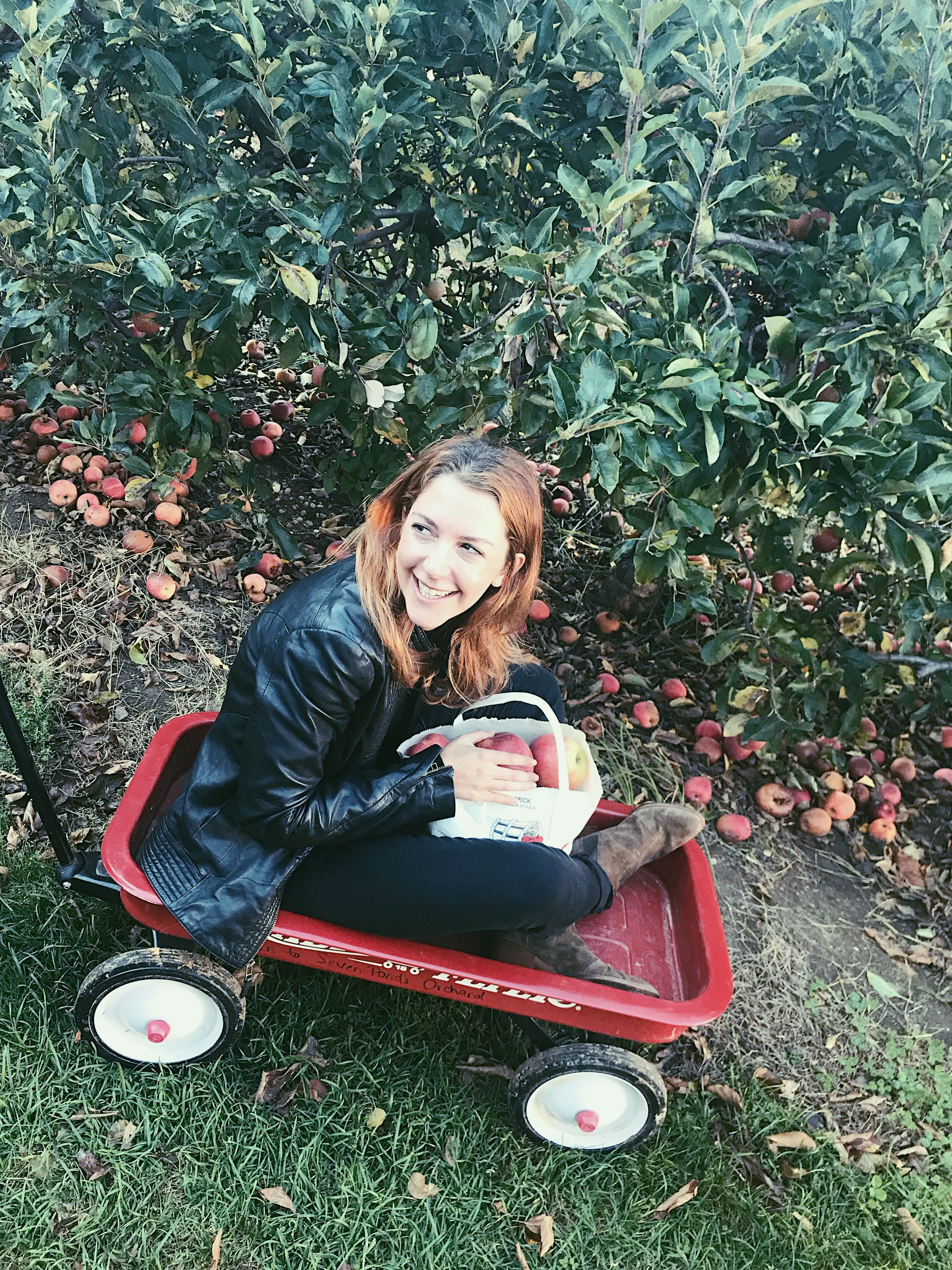 We also went to Seven Ponds Orchard in Water Mill. One bag and three girls later, I can say that we will not be needing to add apples to our grocery list in the near future. Plus we had to get a picture of us being…well, us lol with me in the cart with apples. After that we went to Hank’s Pumpkin Town where we went pumpkin picking, and we got some sweets to satisfy our sweet tooth craving. And of course we had to pickup the apple crumb pie to go, which safe to say we devoured what was left after sharing with the fam on the train ride back into the city.